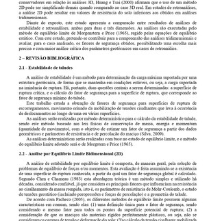 Análises de estabilidade 2D são predominantemente utilizadas, devido à praticidade e resultados, em sua maioria, mais conservadores, tornando as análises 3D menos disseminadas.